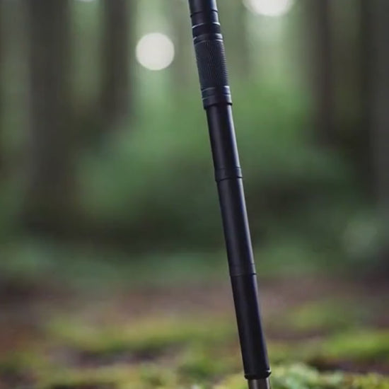 Crafted from aircraft-grade aluminum with precision-sealed threading, Ranger Rod feels tough, steady, and silent — no rattling, no wobble. Each segment twists together securely, creating a full-length staff (48-54 inches) that supports your weight on uneven ground and disassembles quickly for travel or storage.